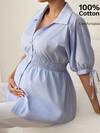 SHEIN Camisa informal suelta de unicolor de manga corta y abotonadura sencilla para mujeres embarazadas