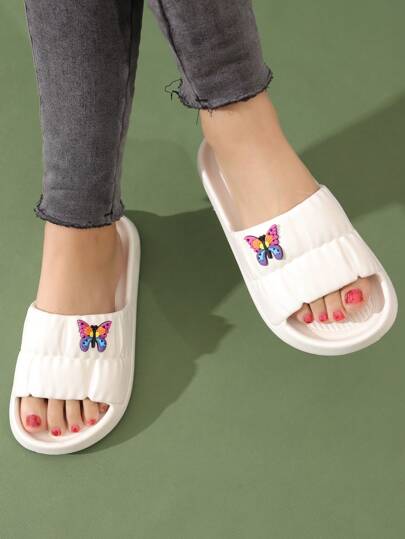preppy Chanclas para textura en relieve con dibujos animados con diseño de mariposa con banda única EVA Zapatillas - Blanco - Añade 1