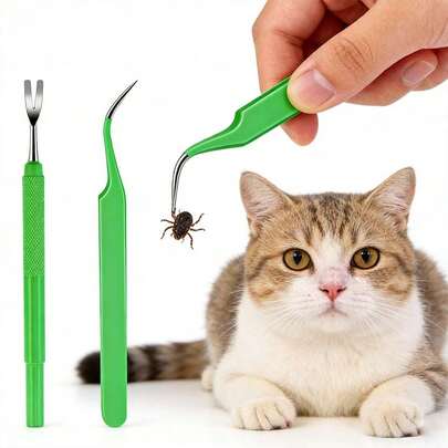 Removedor de garrapatas de acero inoxidable profesional, herramienta de eliminación de garrapatas y pulgas para mascotas, pinzas de precisión de una sola pieza, antimordedura y antideslizante, eliminación de garrapatas y pulgas en gatos y perros, equipo esencial para pasear perros al aire libre