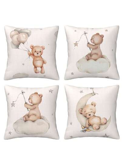 4 piezas de Fundas de cojín con estampado de osos adorables - Fundas de cojín cuadradas para decoración en la sala de estar, dormitorio, sofá, automóvil y al aire libre, decoración del hogar encantadora - Fundas de cojín decorativas con cremallera, impresión unilateral, lavables a máquina (no incluye el cojín interior) - Multicolor - Añade 1