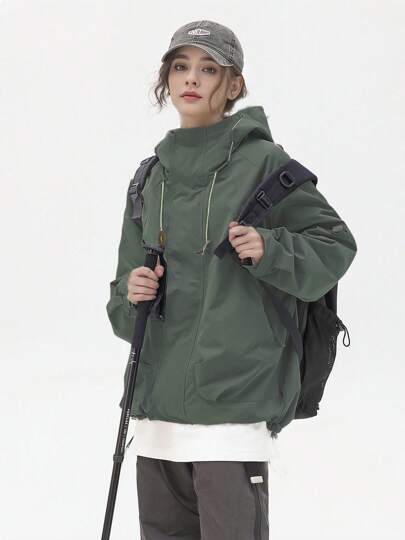 Chaqueta cortaviento para mujer, abrigo ligero y suelto resistente al agua para exteriores, con capucha y mangas largas, para primavera - Añade 1