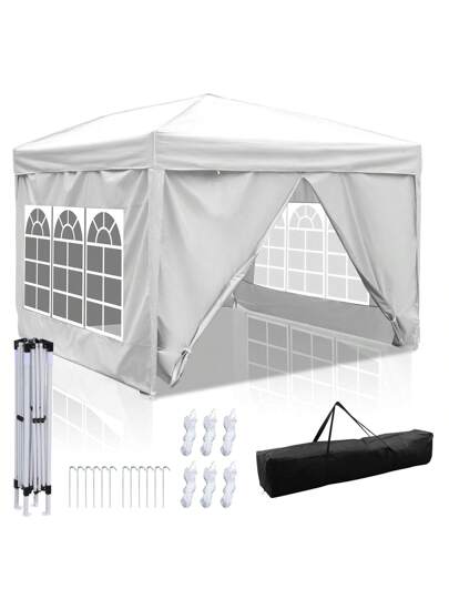 Jiubiaz Pabellón plegable blanco de 3x3 m con paredes laterales, carpa para fiestas, protección UV, altura regulable con bolsa de transporte, para exteriores, jardín, camping - Blanco - Añade 1
