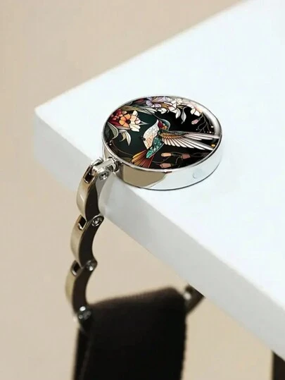 1 Pieza Gancho colgante de patrón Taichi de colibrí con impresión exquisita, percha plegable para mesas y escritorios para colgar bolsos. - Negro - Añade 1