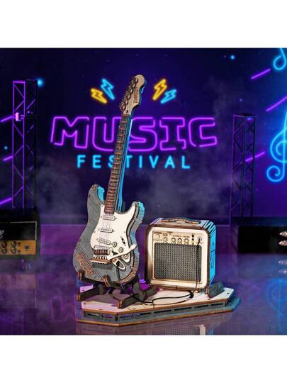 ROKR 3D Wooden Puzzles Guitar Craft Model Kits For Adults To Build Musical Instruments Birthday Gift For Family And Friends 140 Pieces, Guitar - Multicolor - Añade 1