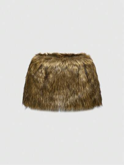 ROMWE Grunge Punk Minifalda recortada de piel sintética estilo Y2K Baddie de cintura superbaja - Marrón - Añade 2