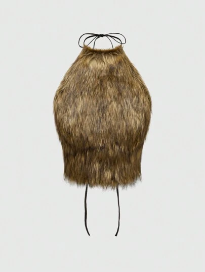 ROMWE Grunge Punk Top corto de mujer con cuello alto y diseño sin espalda de peluche sintético estilo Y2K - Marrón - Añade 1