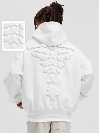 ROMWE MEN Sudadera con capucha casual de manga larga con patrón de hueso 3D para hombres - Blanco - Añade 3