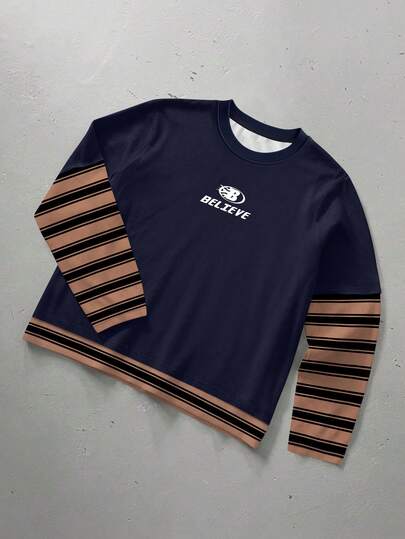 ROMWE MEN Street Life Camiseta de manga larga con cuello redondo informal para hombre - Multicolor - Añade 1