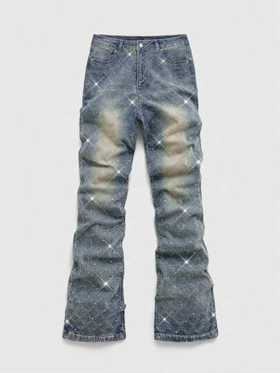 ROMWE MEN Street Life Jeans de pierna acampanada y desgastados de moda casual para hombres - Neblina azul - Añade 5