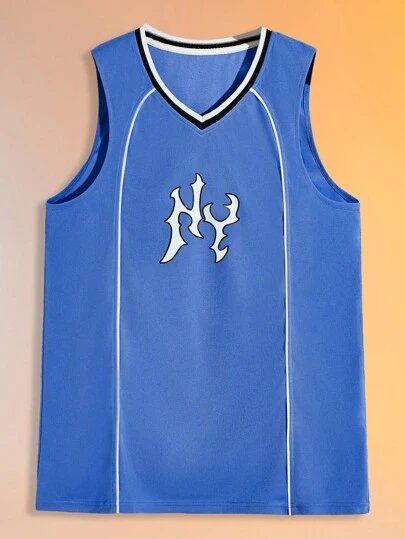 ROMWE MEN Street Life Hombres Top tank con estampado de letra ribete en contraste - Azul - Añade 1