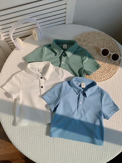 SHEIN LMoss Kids Juego de 3 piezas de camiseta polo de unicolor linda para bebé niño, apta para fiesta de cumpleaños, gala, presentación, boda, baby shower, celebración del 1er cumpleaños - Multicolor - Añade 3