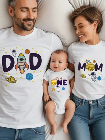 SHEIN Camiseta casual de manga corta con cuello redondo para hombre en verano con estampado de letra y cohete - Blanco - Añade 1