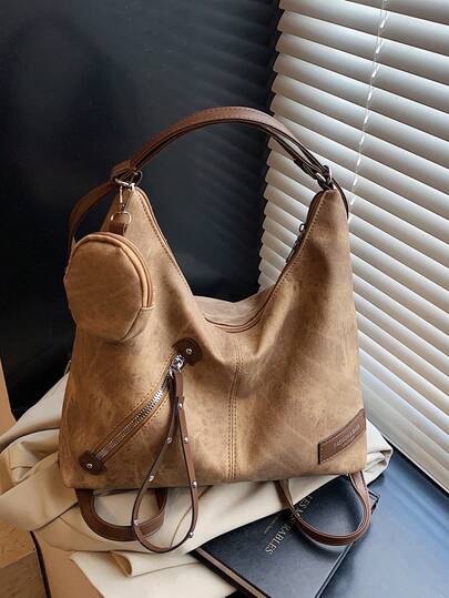 Bolso de mano retro de gran capacidad, nueva bolsa de hombro de nicho coreano, mochila multifuncional de moda para mujer - Marrón - Añade 1