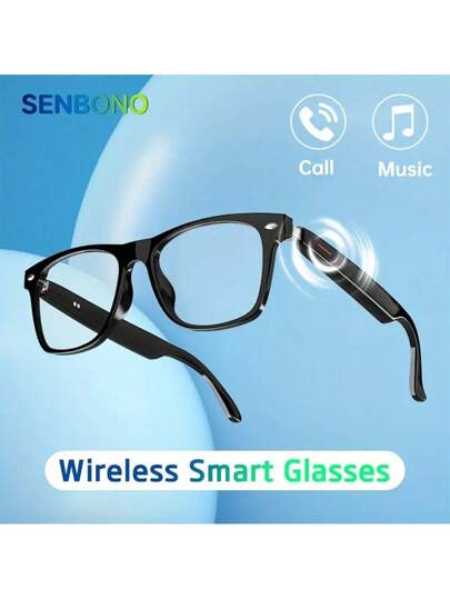 Gafas inteligentes inalámbricas SENBONO - Tecnología portátil con control táctil, sonido Hi-Fi, micrófono incorporado, recargable por USB, conectividad inalámbrica para música, decoración, llamadas y actividades al aire libre - Regalo perfecto para accesorios de gafas de mujer - Negro - Añade 1