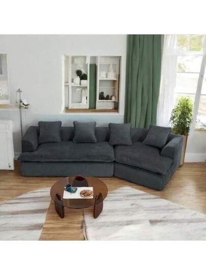 Cojines modulares de sofá con otomano móvil, ideal para salas de estar de casas y apartamentos. Estilo minimalista, tela anti-arrugas, asiento profundo de respaldo bajo en la esquina, seccional espacioso. Combinación libre de 2 piezas para una decoración versátil del hogar y un cómodo descanso - Negro + Boucle + 3 plazas - Añade 10