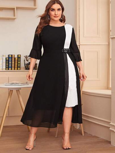 SHEIN Clasi Vestido con diseño con malla de color combinado - grande - Negro - Añade 2