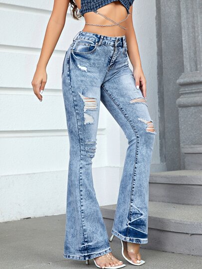 Jeans de pierna amplia desgarro - Lavado ligero - Añade 6