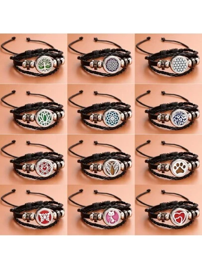 Nuevo brazalete difusor de aceites esenciales con diseño de giro abierto, correa trenzado negro, joyería ajustable de terapia de fragancias (Sin aroma, diseño de giro sin cierre magnético) - Negro - Añade 10