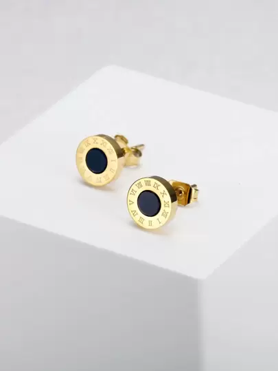 MONALLY Pendientes de tachuela número romano redondo - Amarillo Oro - Añade 1