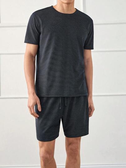 RueChic Conjunto de camisetas regulares para hombre con estampado de rayas especiales y parches - Negro - Añade 6