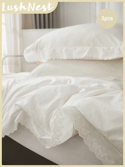 1 pieza Juego de Funda Nórdica de Encaje Blanco, Estilo Bohemio Rústico de 3 Piezas, Ribete de Volantes, Funda Nórdica de Microfibra Suave (1 Funda Nórdica + 2 Fundas de Almohada, No se Incluye el Edredón), Unisex, 1 Funda Nórdica, 2 Fundas de Almohada, No se Incluye el Edredón, Apto para Todas las Estaciones, Ideal para Uso en Dormitorios - Blanco - Añade 3