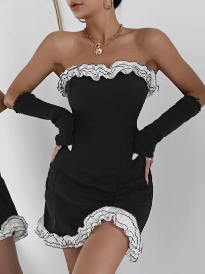 SHEIN SXY Vestido mini con diseño fruncido sin guantes - Negro - Añade 5