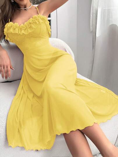 Snug Zone Camisón largo con volantes y malla - Amarillo - Añade 2