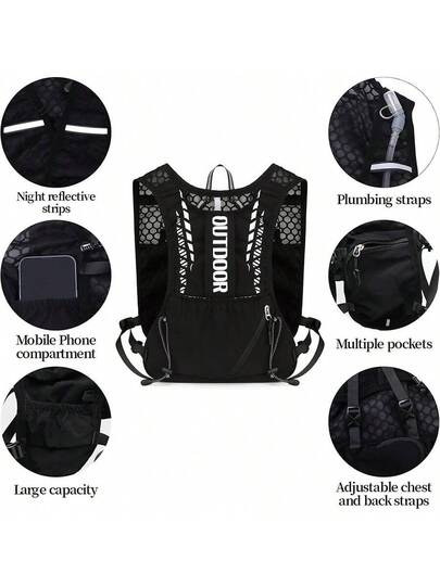 Chaleco de running ligero y reflectante para hombres y mujeres - Mochila de hidratación para maratones, trail running, ciclismo y senderismo (solo la mochila sin la bolsa de agua) - Negro - Añade 1