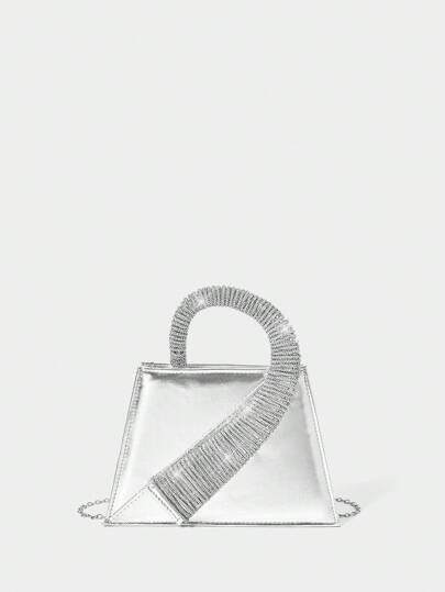 SHECARRY Bolso de mano elegante y de moda para la noche, decorado con cristales - Plateado - Añade 4