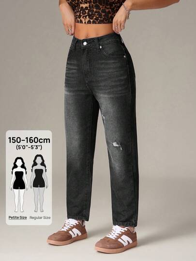 6. SHEIN PETITE Jeans de mezclilla minimalistas de unicolor para uso diario de mujer