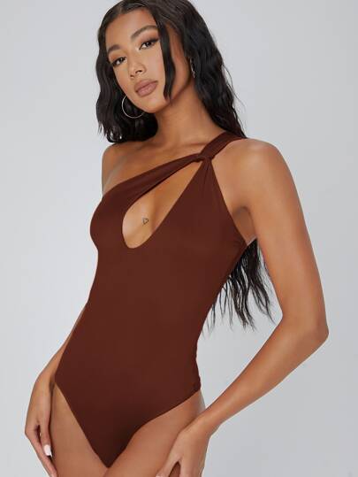 SHEIN BAE Body con abertura de un hombro cheeky - Café integral - Añade 3