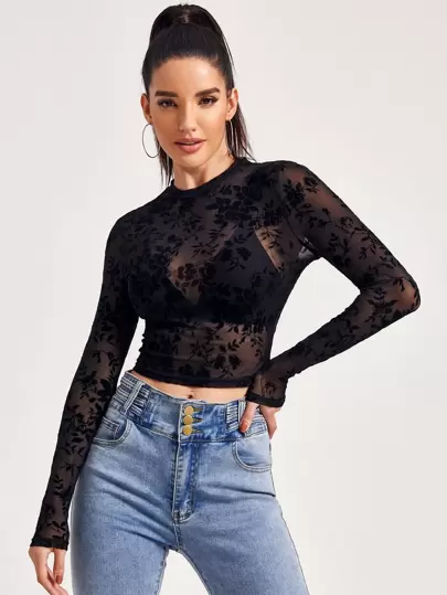 SHEIN BAE Top con malla de cuello alto sin sujetador - Negro - Añade 5
