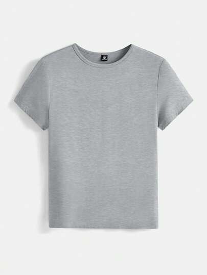 SHEIN BASICS Camiseta De Cuello Redondo De Talla Grande, unicolor Y Ajustada Para Usar En Verano De Forma Casual - Gris - Añade 5