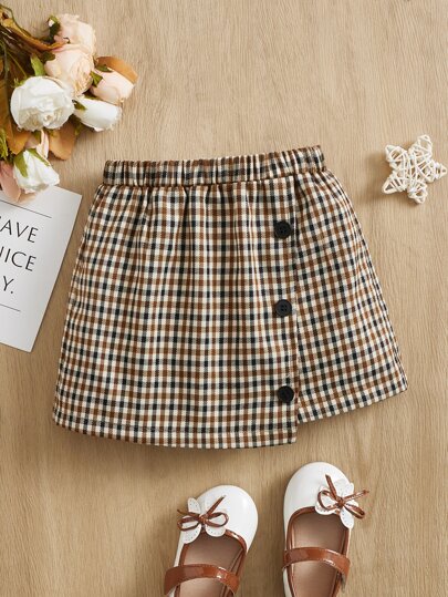 SHEIN Bebé Falda de guingán con botón falso bajo asimétrico - Multicolor - Añade 1