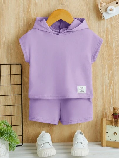 SHEIN Bebé niño Shorts con camiseta con diseño de parche de letra con capucha - Lila Púrpura - Añade 2