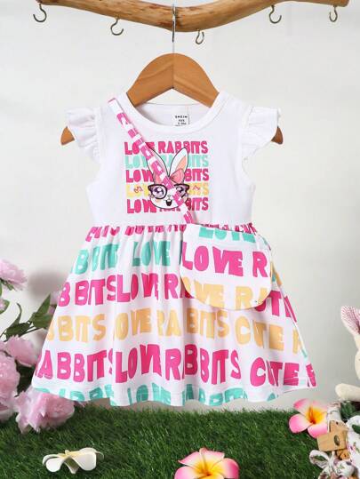 SHEIN Vestido de verano para bebé niña con mangas de volantes y estampado colorido y lindo - Multicolor - Añade 1