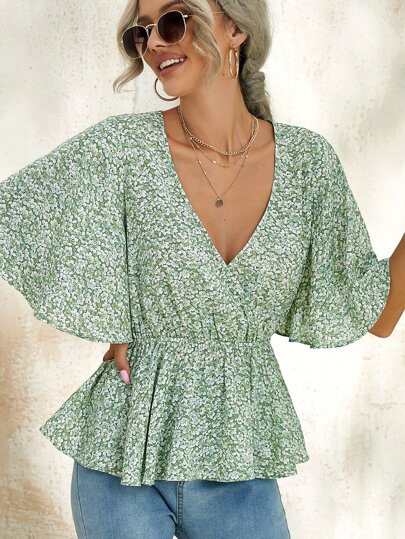 SHEIN Top De Vuelo Con Volantes Y Estampado Floral Pequeño - Multicolor - Añade 5