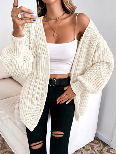 SHEIN Essnce Cárdigan con botón delantero de hombros caídos - Beis - Añade 3