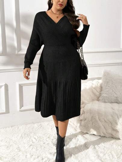 SHEIN Frenchy Vestido de punto elegante y sencillo de corte evasé para tallas grandes - Negro - Añade 5
