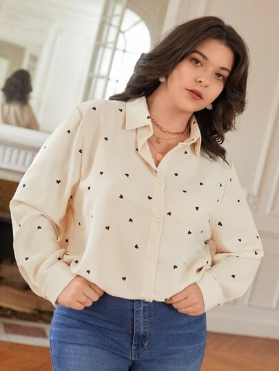 SHEIN Frenchy Camisa con estampado de corazón con botón - Albaricoque - Añade 1
