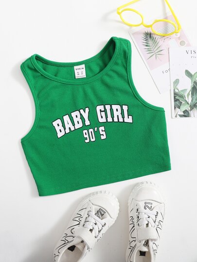 SHEIN Top tank tejido de canalé con estampado de letra - Verde - Añade 4