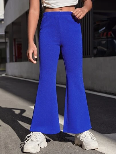 SHEIN Pantalón acampanado de talle alto de unicolor para niña preadolescente, casual y ajustado - azul real - Añade 1