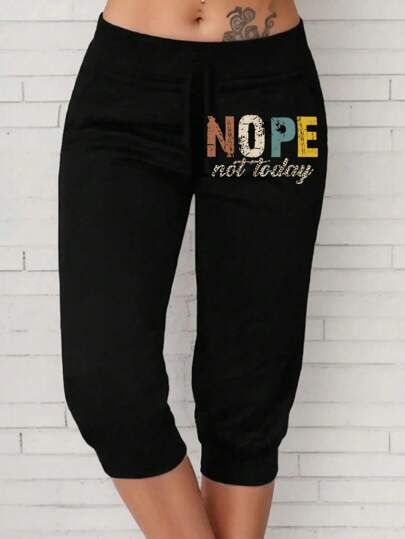 SHEIN LUNE Pantalones casuales de talla grande con estampado de letras de 3/4 - Negro - Añade 1