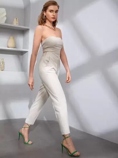 BizChic Top bandeau de espalda con cordón asimétrico & Pantalones con costura delantera Set ropa de trabajo - Beis - Añade 2