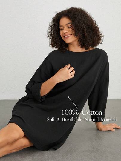 Ocili Vestido De Casa De Color Sólido Con Manga Drop Shoulder - Negro - Añade 4