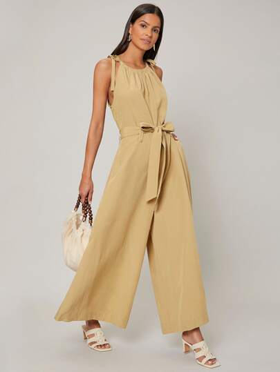 SHEIN Unity Mono de tirantes lino con cinturón - Caqui - Añade 10