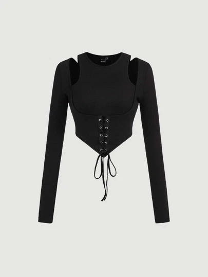 SHEIN MOD Camiseta con abertura con ojal con cordón delantero - Negro - Añade 2
