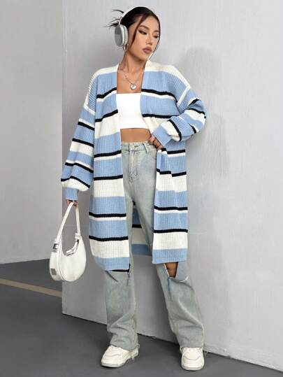 SHEIN Unity Cárdigan De Rayas Suelto Y Cómodo Para Mujer Con Frente Abierto - Multicolor - Añade 5