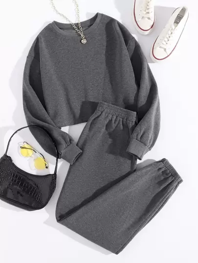 SHEIN Unity Sudadera con forro térmico unicolor con Pantalones deportivos - Gris - Añade 2