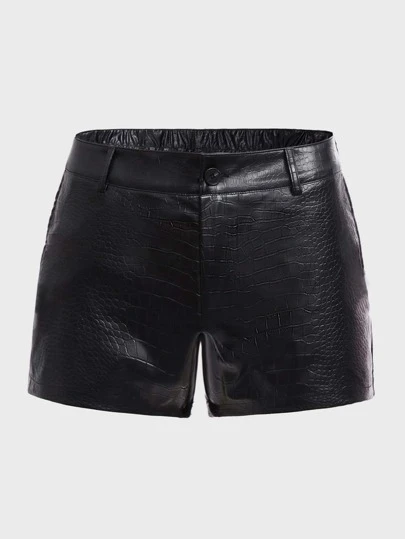 Manfinity RebelGame Hombres Shorts con cocodrilo en relieve PU - Negro - Añade 4